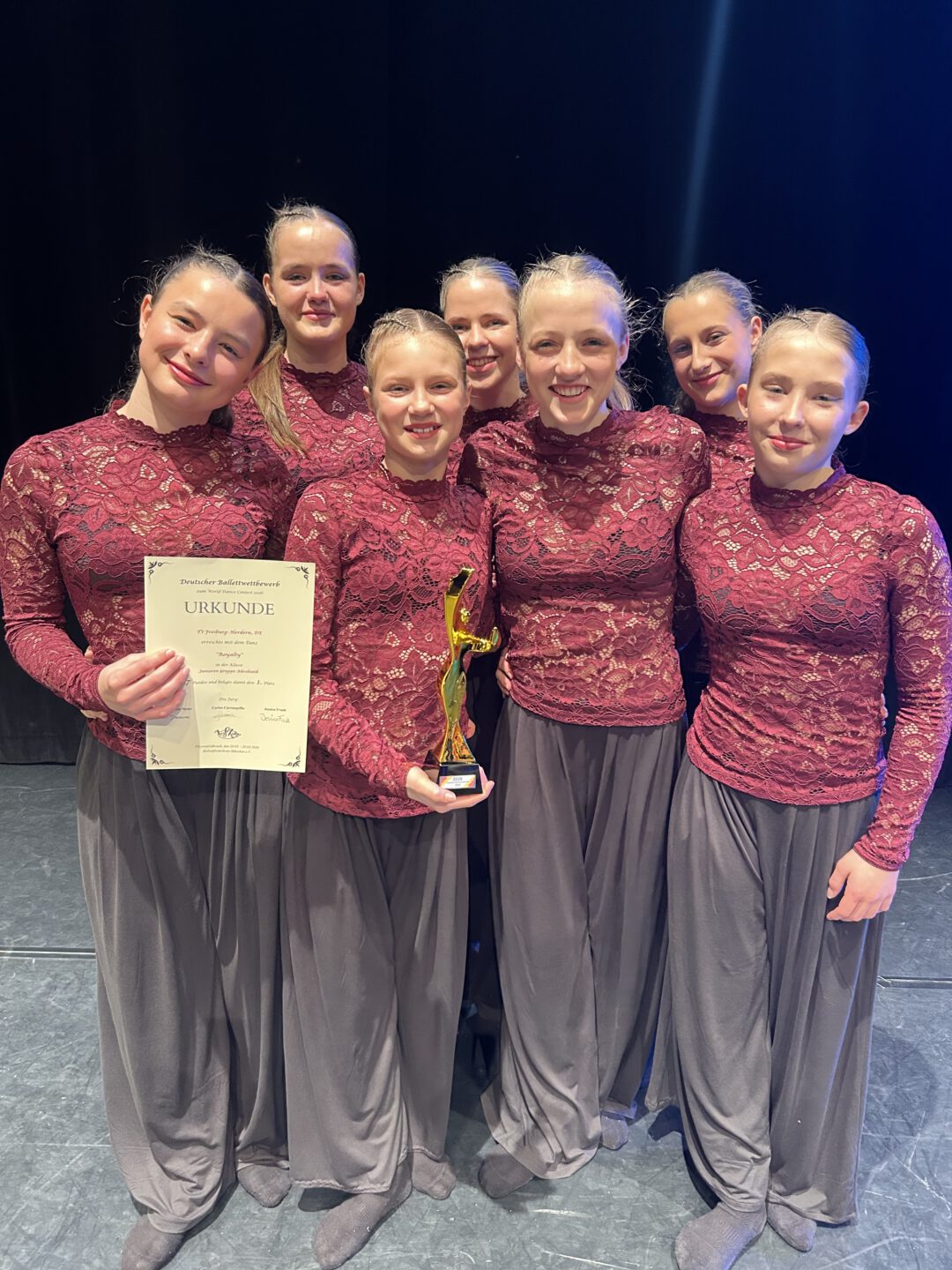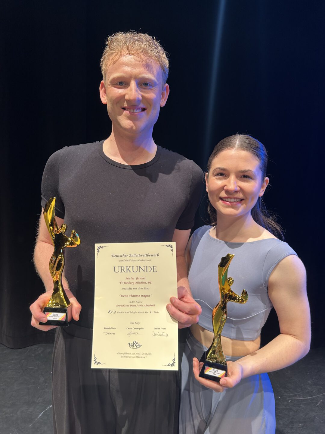Bei den Deutschen Meisterschaften im Acrobatic Dance, die am 26. März 2026 in Fürstenfeldbruck im Rahmen des Deutschen Ballettwettbewerbs stattfanden, konnten unsere Tänzerinnen und Tänzer herausragende Erfolge erzielen. Der Wettbewerb wurde vom Ballettförderkreis München e.V. ausgerichtet.